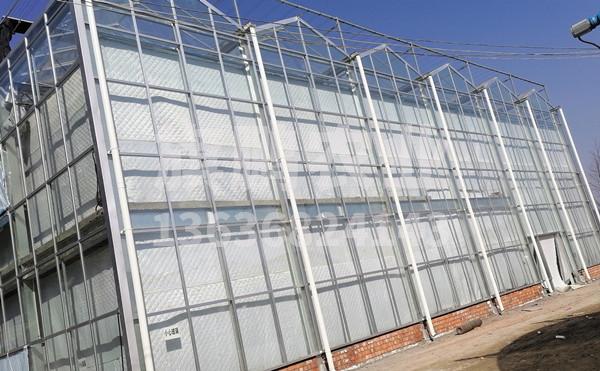 这类温室是*复杂*的一种温室,一般为文洛式venlo结构,一跨三个或者四个尖顶。全玻璃温室顶部一般覆盖5mm钢化玻璃或者双层中空阳光板,四周一般覆盖单层或者双层中空玻璃(钢化或者浮法玻璃要根据客户自己选择)。