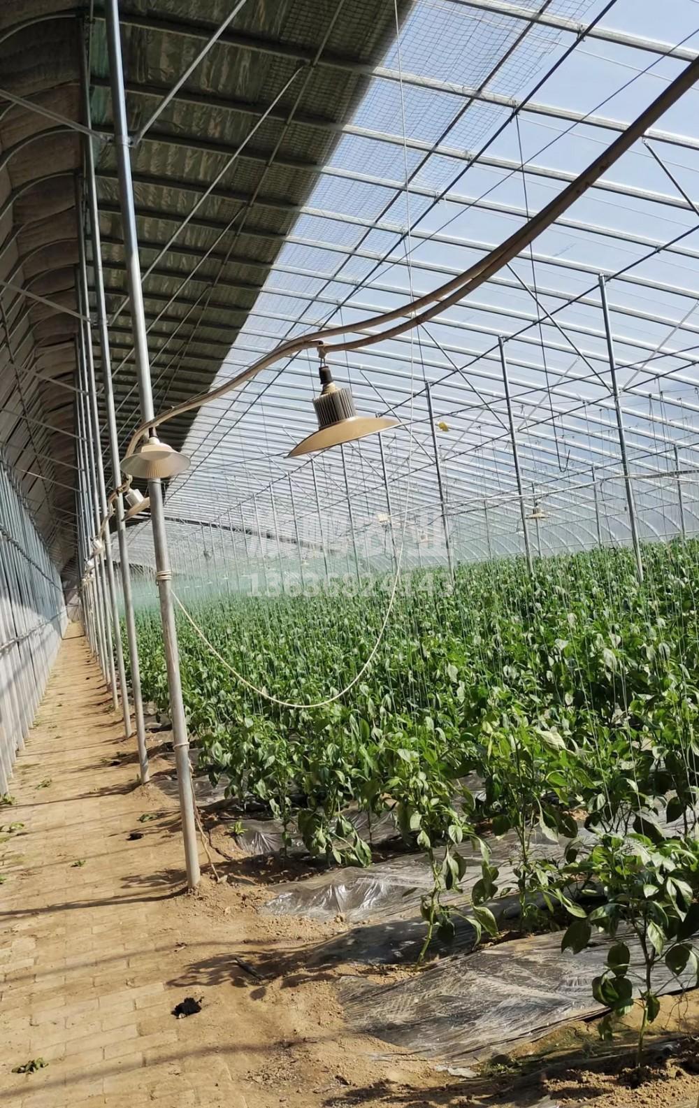 配置的系统和全玻璃温室是一样的:主体热镀锌钢骨架、顶部及四周覆盖材料、外遮阳系统、内遮阳保温系统、顶开窗系统、水帘风机降温系统、配电系统、排水系统等。