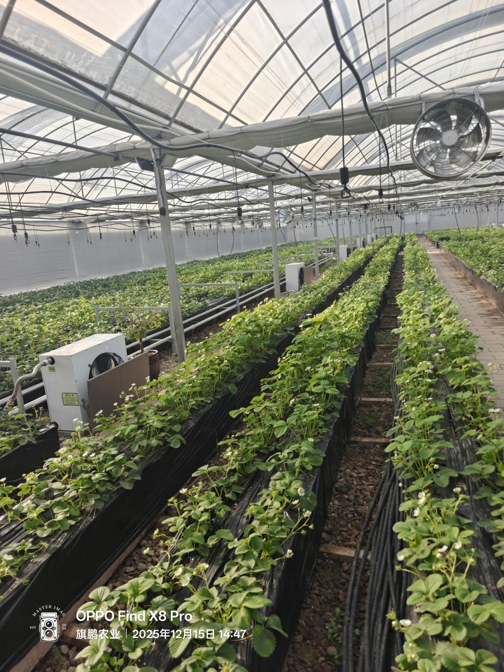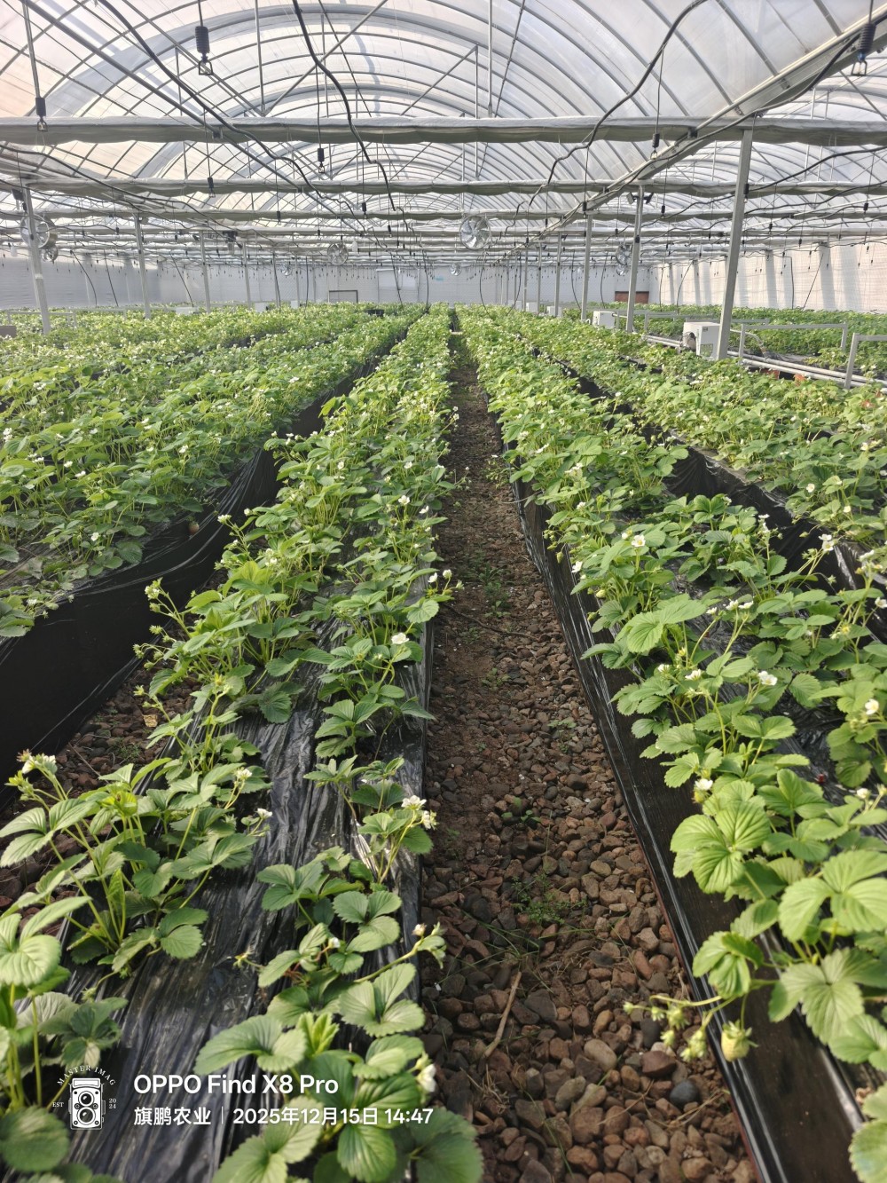 走进规整整洁的连栋温室,连片的翠绿藤蔓间,草莓错落点缀,清甜香气顺着通风系统弥漫开来,生机盎然~