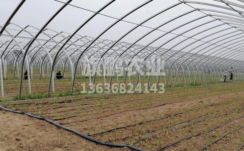 1 、圆拱型或尖顶结构,全部采用热镀锌钢骨架组装而成,承载能力强,圆拱及檩条采用“几”字型结构,可以顺畅排走温室凝露。
