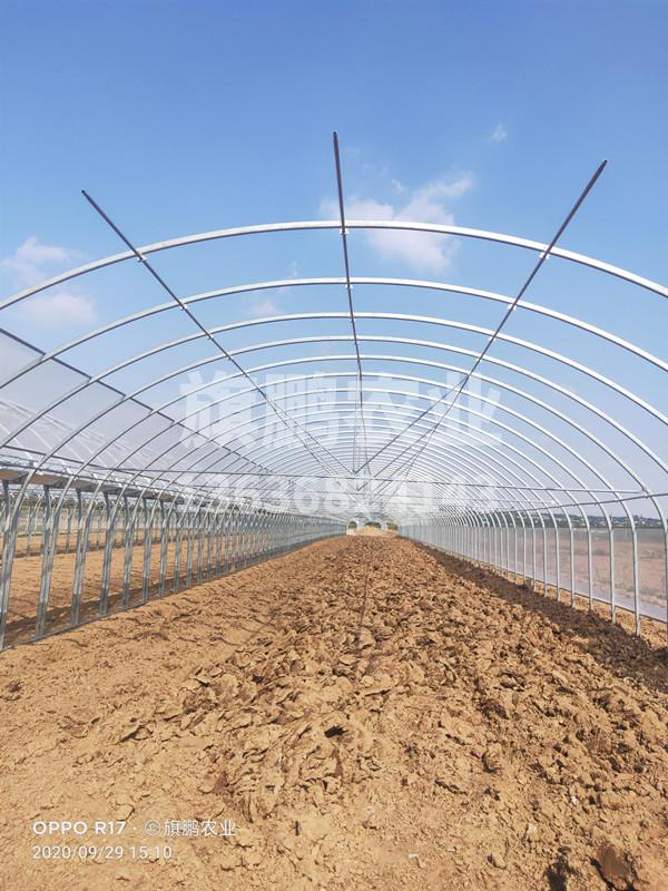 装备:其骨架选用热镀锌矩形管或圆管,顶部配有天沟,端面设置有通风窗口,与拱棚的根本结构相同。