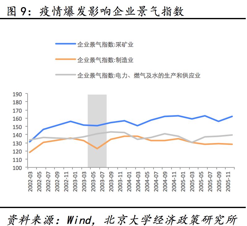节后开工时间延迟、交通受阻等将影响第二产业一季度正常生产。“非典”爆发后的第一季度对工业建筑业影响显著。03年二季度制造业企业景气指数明显下滑,工业、建筑业同比下滑2%和1.7%。工业增加值3-5月连续下降三个月至13.7%。非典爆发处于春节复工之后,但此次疫情使开工时间延迟,道路封锁与疫情监控或使交通受阻影响复工时间。若疫情继续蔓延,各地继续推迟复工时间,第二产业情况将不容乐观。且WHO宣布新冠肺炎疫情构成“国际公共卫生紧急施加”,或对我国进出口造成影响从而进一步冲击第二产业。我们预计第二产业一季度GDP增速将比上季度放缓0.8个百分点,影响GDP增速0.3个百分点左右。但若疫情继续蔓延,各地继续推迟复工时间,第二产业情况将不容乐观。由此我们认为不必对复工过于恐慌,可利用大数据准确定位人群,以免影响正常的经济生产活动,使得经济停顿从而造成更大的损失。