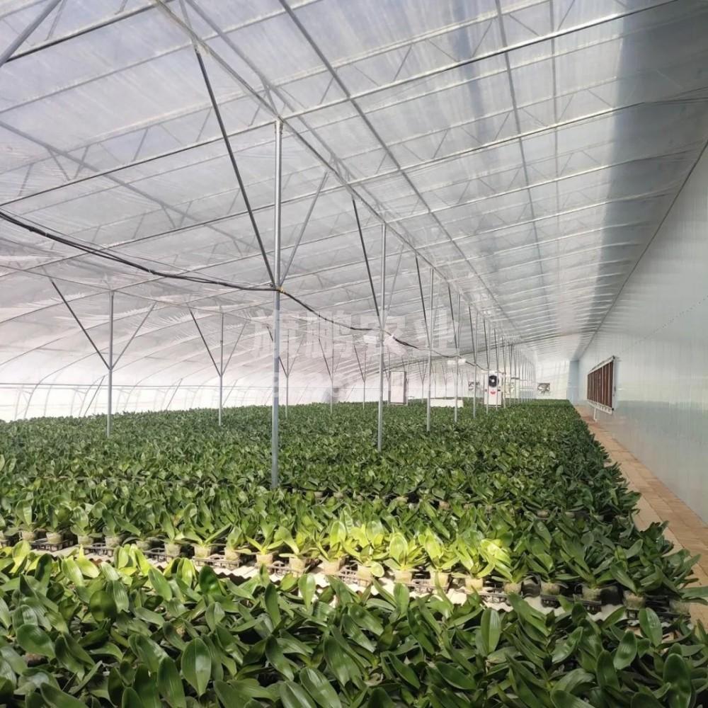 新型日光温室大棚,蝴蝶兰专用大棚,跨度15米,长度80米,保温效果非常好,采光性强。