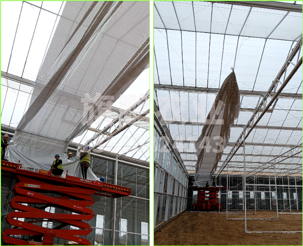因此内遮阳也起到一定的降温作用,但是大部分是散射光使得棚内的作物不被直射,幼苗、幼芽不被灼伤。